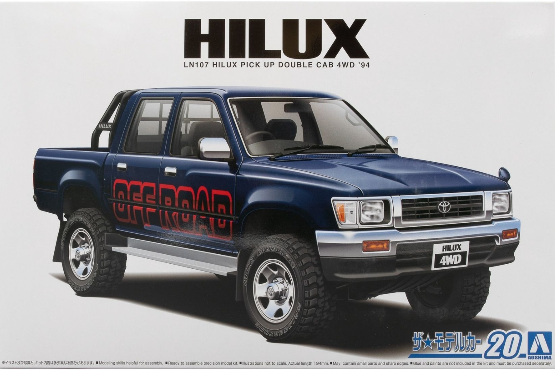 - Aoshima AO06217 Toyota Hilux Pickup LN107 Double Cab 4WD, 1994, model kit 1:24€31.90 €25.73Add to CompareOut of stock