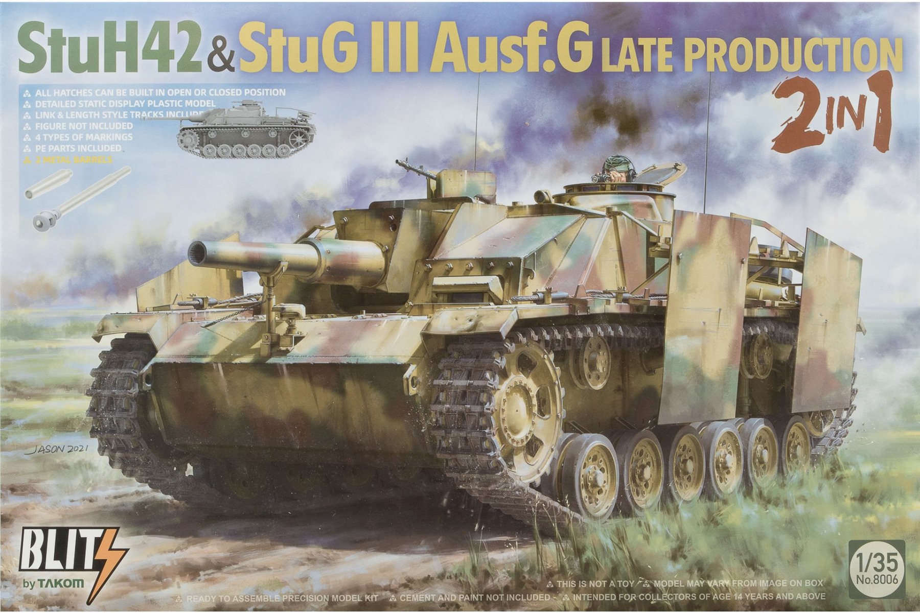 - TAKOM8006 StuH 42 & StuG III Ausf. G Late Production 2 in 1 (Blitz), model kit 1:35€39.90 €32.18Add to CompareOut of stock